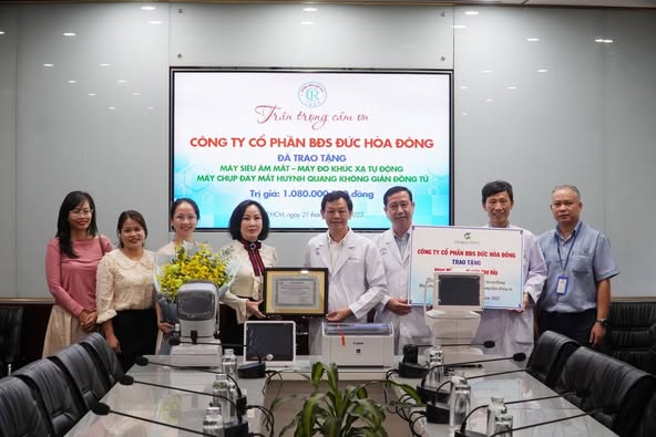 Ngày 21/1/2023, tại TPHCM, bà Nguyễn Thị Hòa – Tổng Giám đốc Công ty Bất động sản Đức Hòa Đông đã trao tặng cho khoa Mắt bệnh viện Chợ Rẫy 3 thiết bị gồm máy siêu âm mắt, máy đo khúc xạ tự động, máy chụp đáy mắt huỳnh quang không giãn đồng tử với tổng trị giá hơn 1 tỷ đồng
